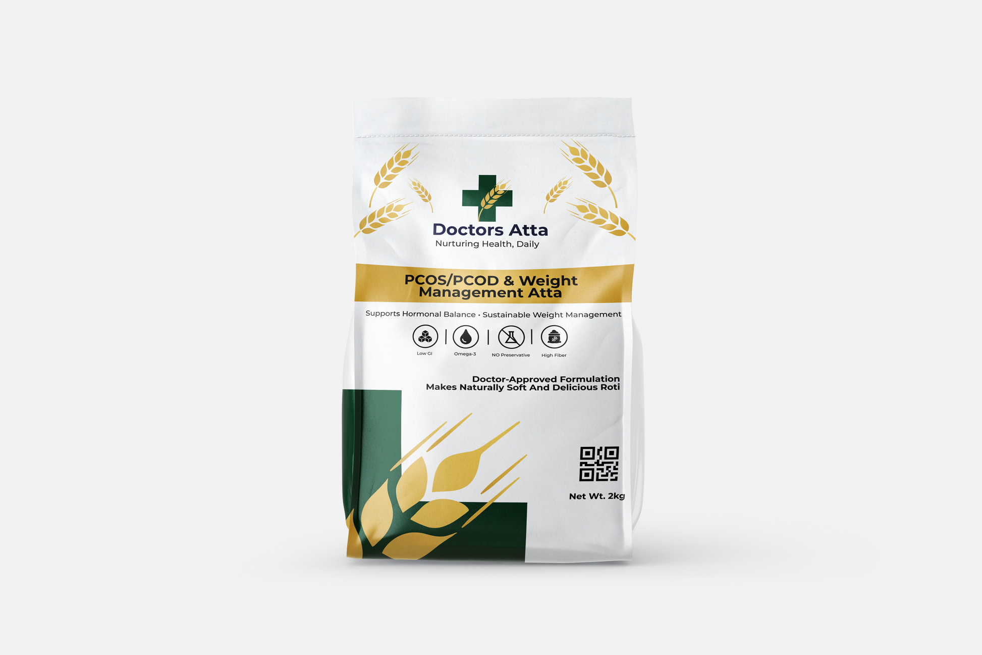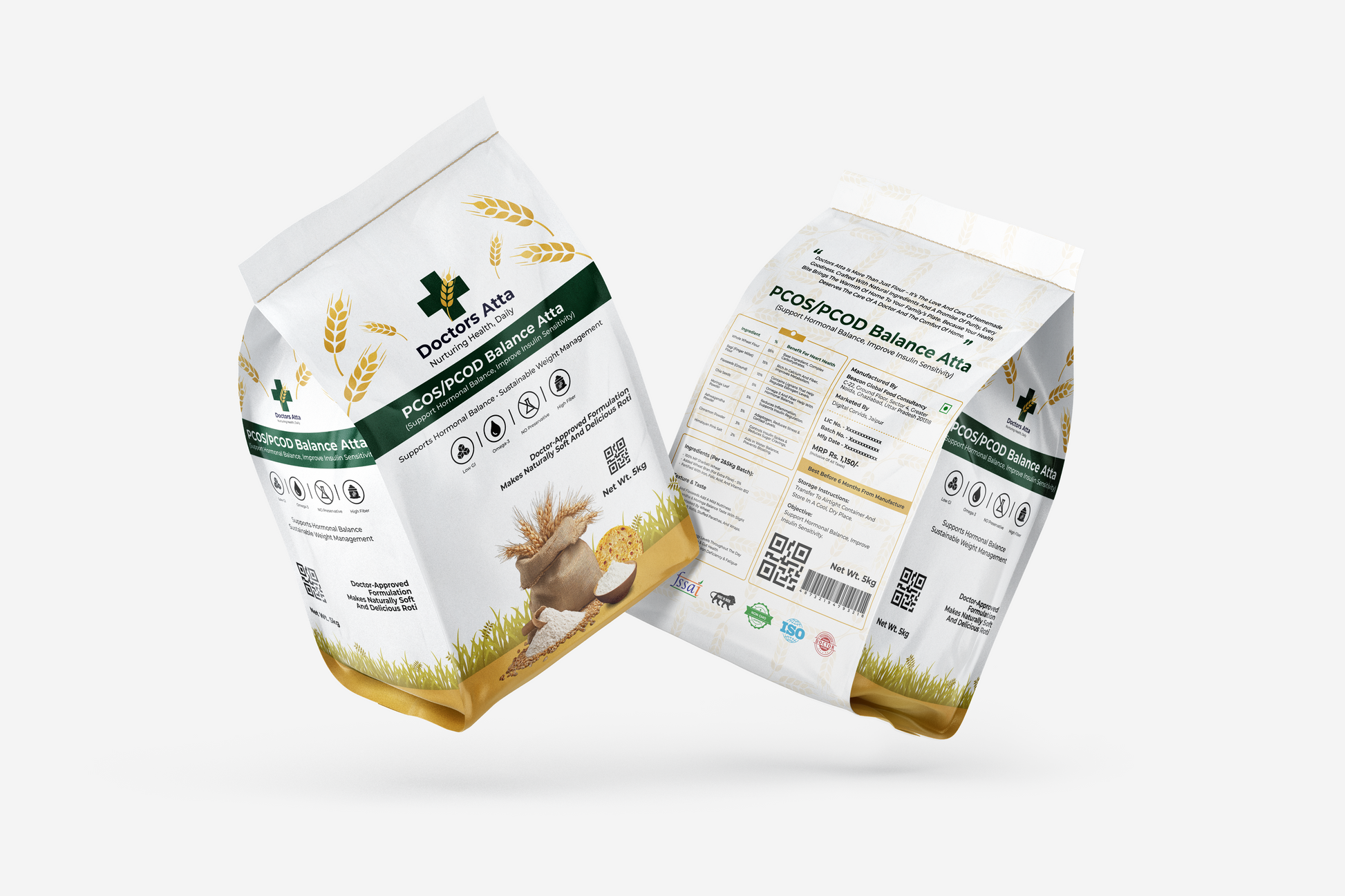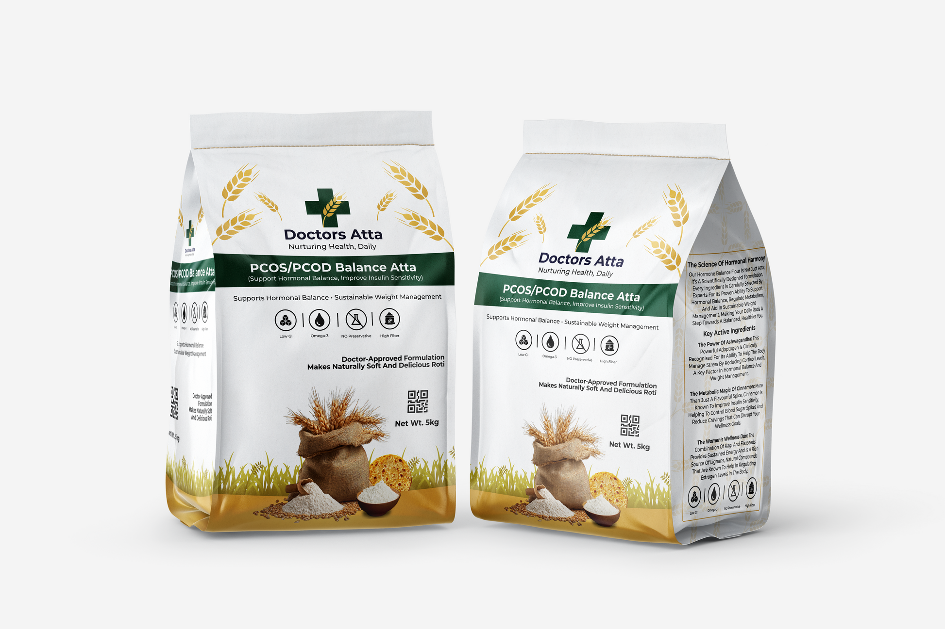Nourishment for women’s wellness begins with Doctor Aata’s Women’s Wellness Blend, a specially formulated flour designed to support hormonal balance, regulate metabolism, and aid in sustainable weight management. This blend acts as a daily nutritional ally for women, especially those dealing with PCOS/PCOD and hormonal fluctuations. It is crafted to help maintain steady energy levels, reduce cravings, support healthy metabolism, and manage stress-related weight gain. The formulation combines powerful adaptogenic herbs, blood-sugar-balancing grains, and nutrient-dense superfoods to deliver complete hormonal and metabolic support. The blend has a mild, nutty sweetness from chia and flaxseeds, while the slight bitterness of ashwagandha and moringa is carefully balanced to create soft, delicious rotis, stuffed parathas, and wraps.